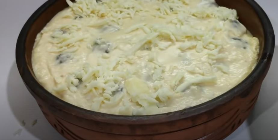 Τελειώνουμε πασπαλίζοντας με το τριμμένο τυρί να το σκεπάσουμε.