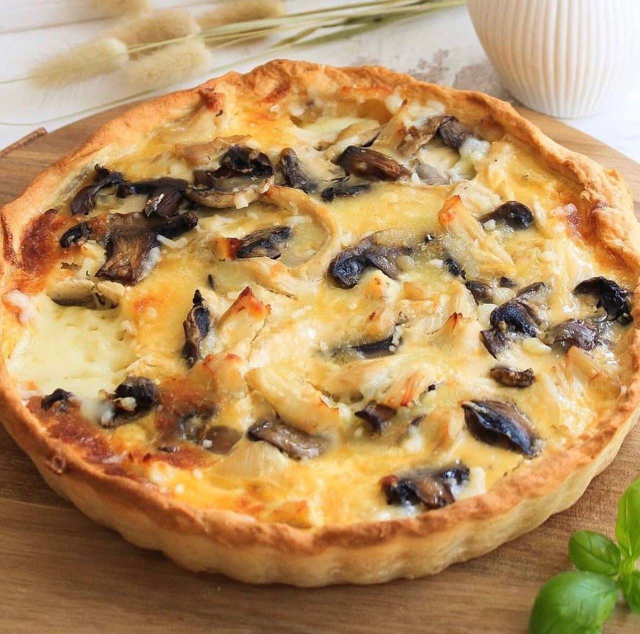 4. Προσθέστε στο μείγμα τα έτοιμα μανιτάρια, το κοτόπουλο και το μισό τυρί.