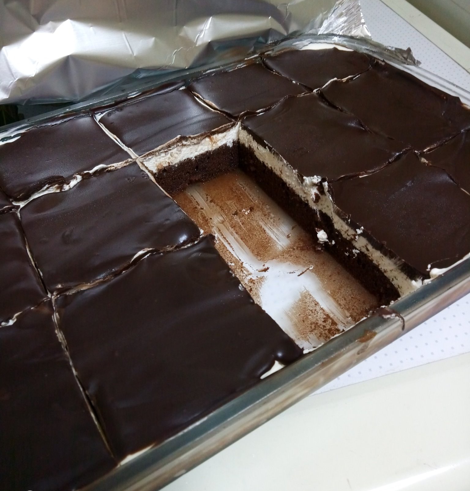 Περιχύνω και απλώνω με σπάτουλα τη γκανάζ πάνω από την κρέμα. Βάζω στο ψυγείο