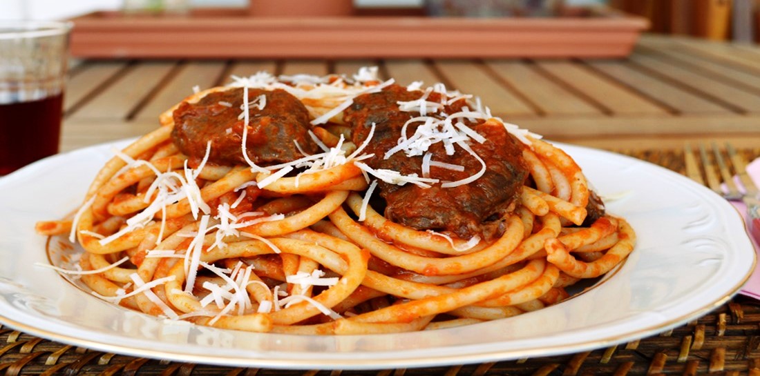 Κοκκινιστό μοσχάρι με χοντρό μακαρόνι