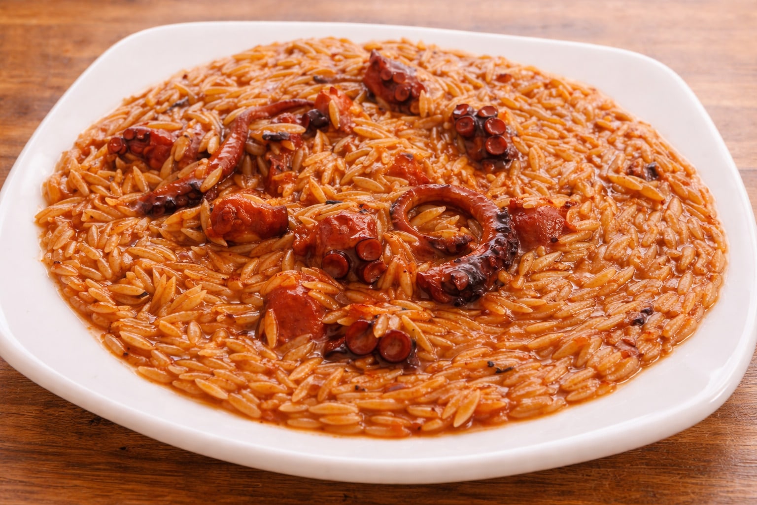 Tο γεγονός ότι σοτάρετε το χταπόδι μόνο του μέχρι να βγάλει τα υγρά του και το σβήνετε με κρασί εξασφαλίζει ότι το Κοκκινιστό χταπόδι με κριθαράκι θα κρατήσει όλη τη νοστιμιά του ψαριού. Αυτό το στοιχείο συνδυάζεται άψογα με τον χρόνο που αφήνετε το φαγητό να “σταθεί” αφού σβήσετε τη φωτιά, οδηγώντας σας με σιγουριά σε ένα αποτέλεσμα όπου η μανέστρα παραμένει ζουμερή και μελωμένη χωρίς να στεγνώσει.