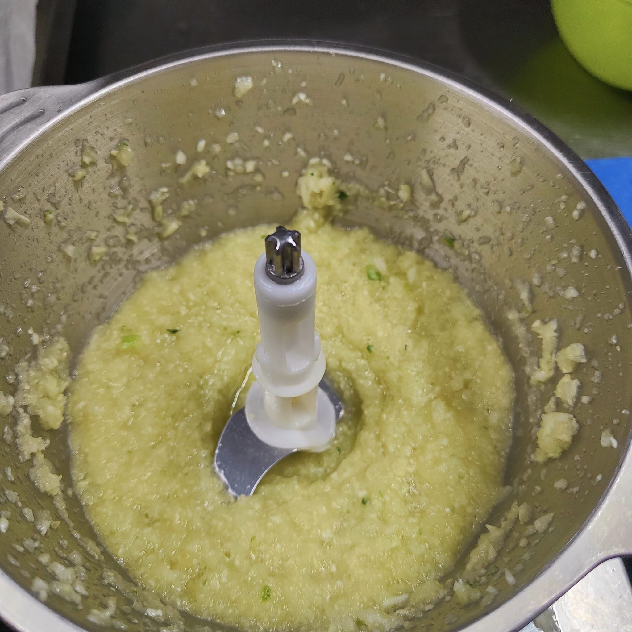 Την εσωτερική σάρκα την ψιλοκόβουμε στο μούλτι ή με το χέρι. Αν βγάλει πολλά υγρά, την στραγγίζουμε ελαφρά.