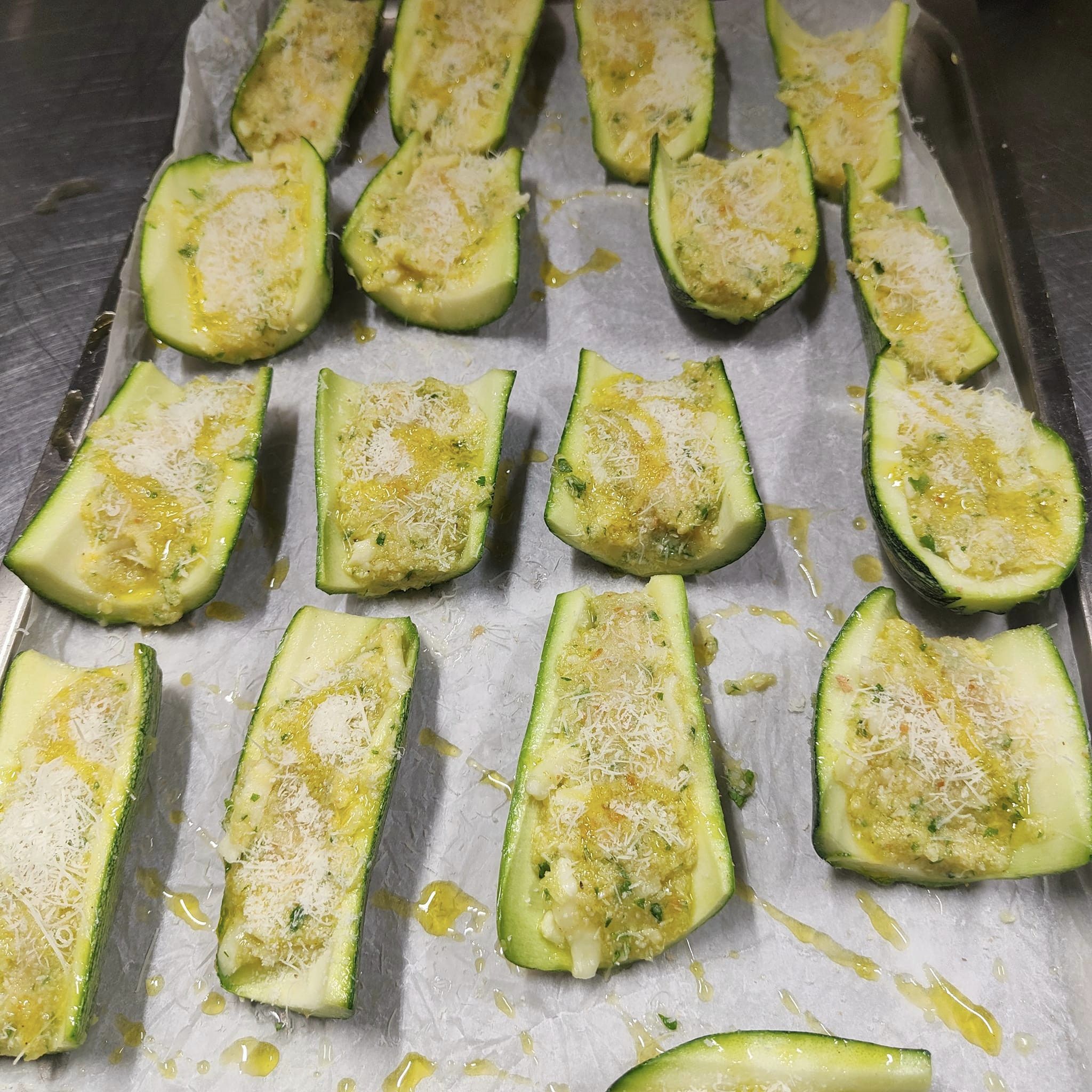 Ψήνουμε για 15-20 λεπτά, ή μέχρι να ροδίσουν και να μαλακώσουν τα κολοκυθάκια.