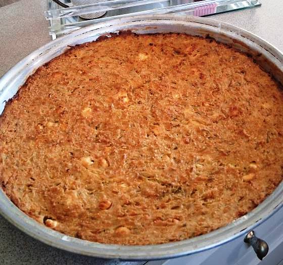 6. Ψήνω σε προθερμασμένο φούρνο στους 180°C για περίπου 45-50 λεπτά, μέχρι να πάρει η επιφάνεια ένα όμορφο χρυσαφένιο χρώμα.