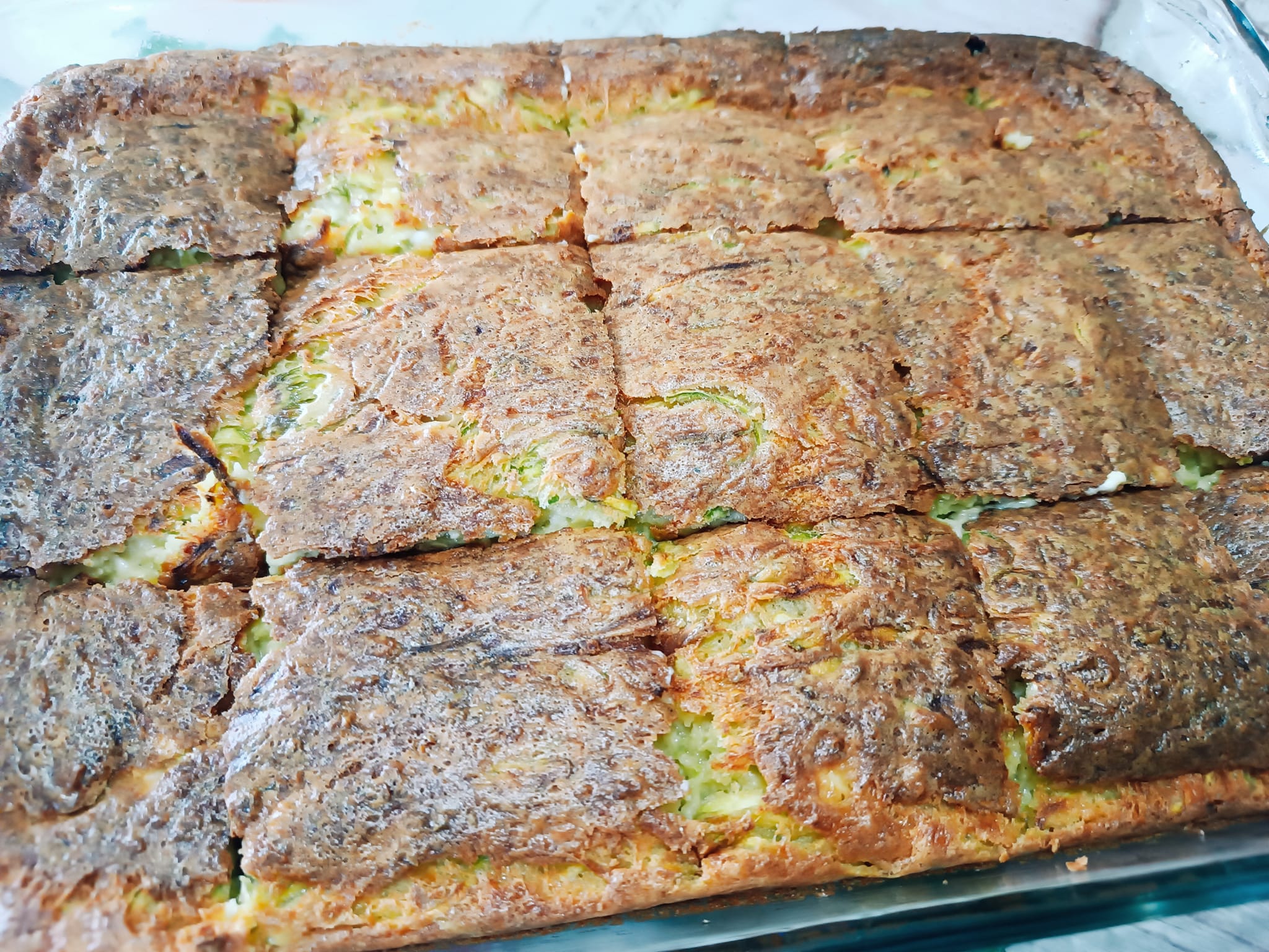 Χτυπάω στο μίξερ τ αυγά, σπορελαιο, γιαούρτι, αλάτι, λίγο πιπέρι, ρίχνω φέτα τριμμένη και την γραβιέρα τριμμένη,ρίχνω τα κολοκυθάκια, δυόσμο,κρεμμύδι που το έχω περασει από το μπλέντερ, αλεύρι ανακατεμενο με το μπεικιν. Αδειαζω το μειγμα σε ταψί ισιώνω και ψήνω σε προθερμασμενο φούρνο στους 170 για. 50′