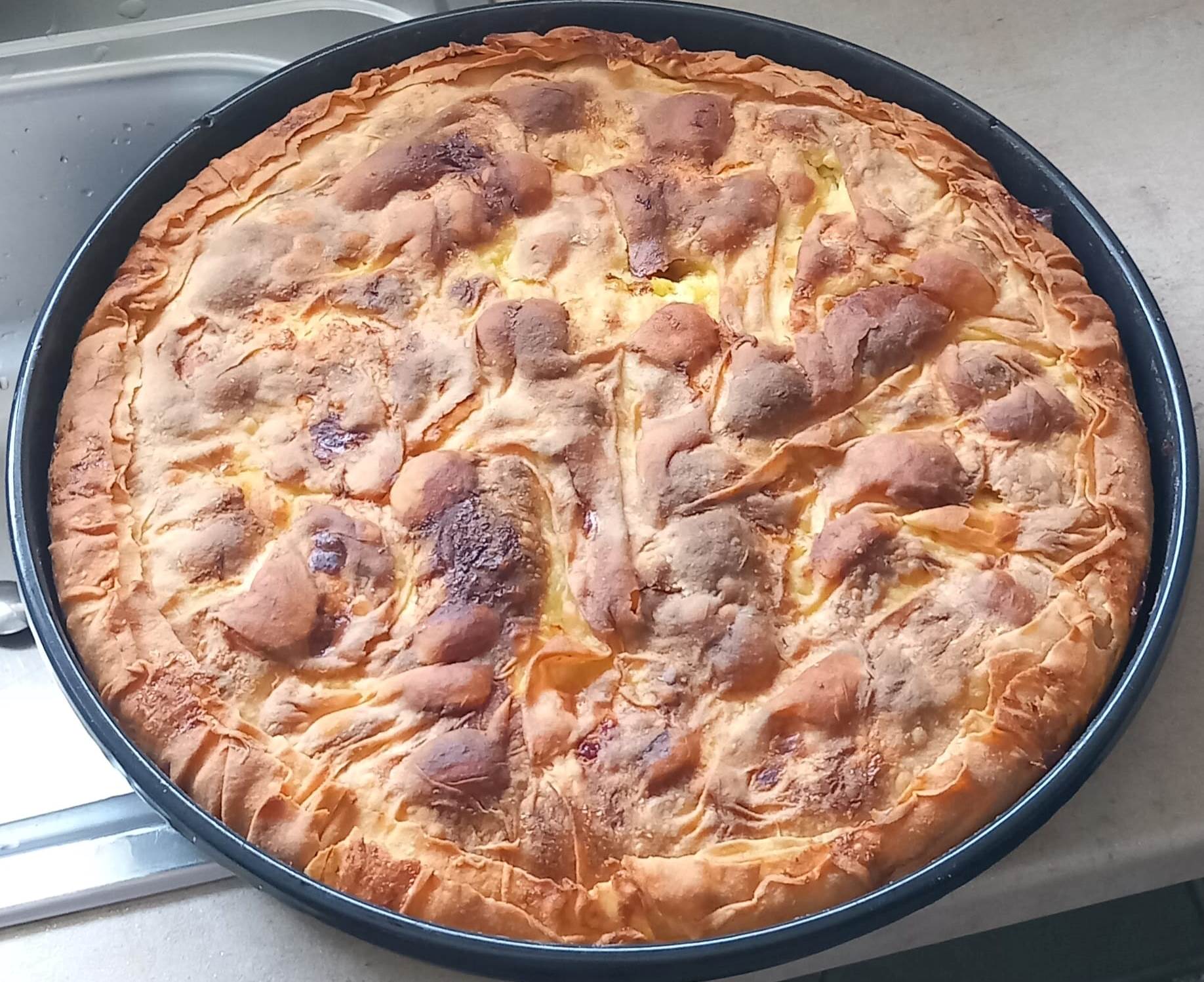 Σβήστε το φούρνο βγάλτε την πίτα και την κόβετε αμέσως καυτή…έτσι το φύλλο διατηρείται τραγανό