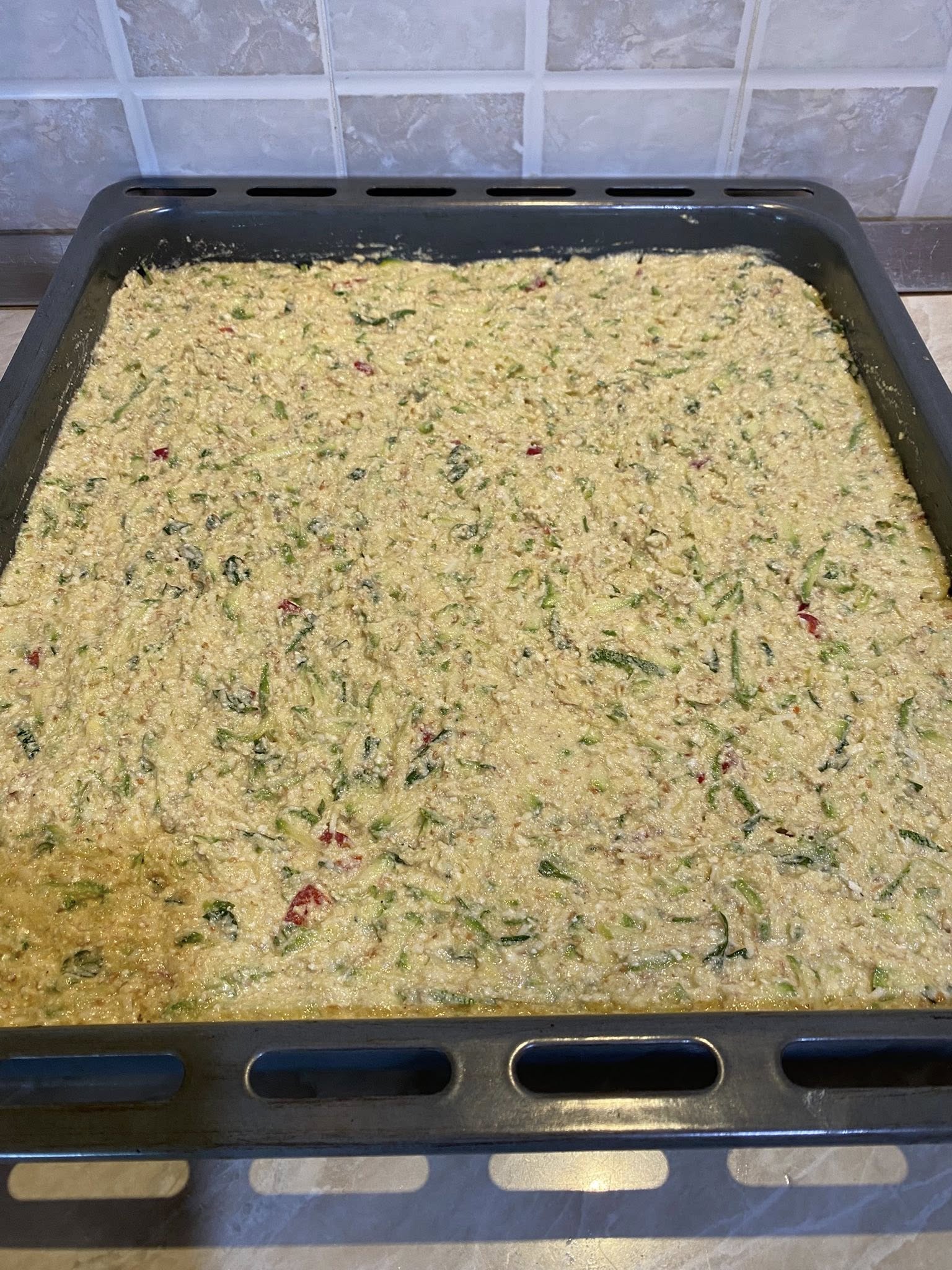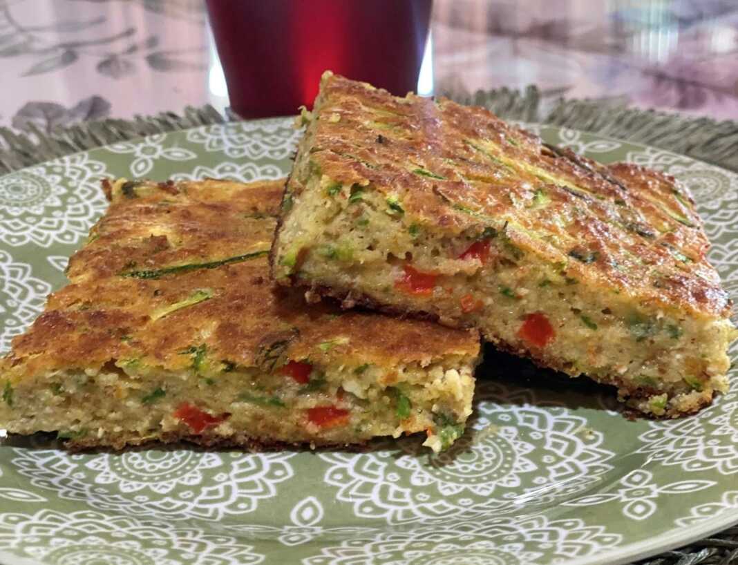 Σε ένα μπολ, χτυπάτε αυγά με γιαούρτι στραγγιστό, αλάτι, πιπέρι, κουρκουμά, λίγη γλυκιά πάπρικα, ρίγανη, θυμάρι, υγρή σόδα και λίγο ελαιόλαδο. Ρίχνετε το μείγμα στα τριμμένα λαχανικά. Έπειτα, προσθέτετε ανθότυρο και λίγη γραβιέρα, ή όποιο άλλο μαλακό τυρί έχετε. Εάν θέλετε, μπορείτε να βάλετε και λίγη φέτα.