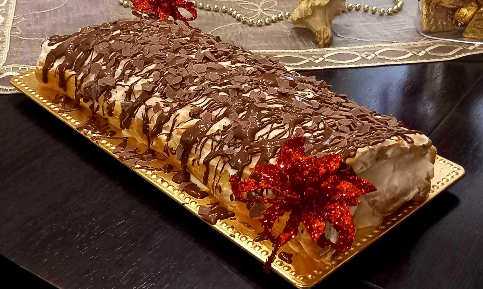 Ο κορμός εκλέρ είναι ένα εντυπωσιακό επιδόρπιο που συνδυάζει την τραγανή ζύμη των εκλέρ με την απαλή κρέμα και τη σοκολατένια επικάλυψη.