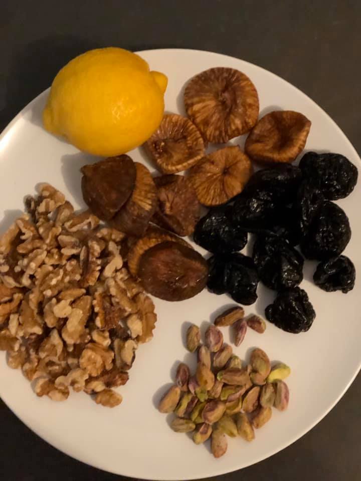 Βυθίστε τα σύκα και τα δαμάσκηνα σε βραστό νερό για 5 λεπτά και στραγγίξτε για περίπου