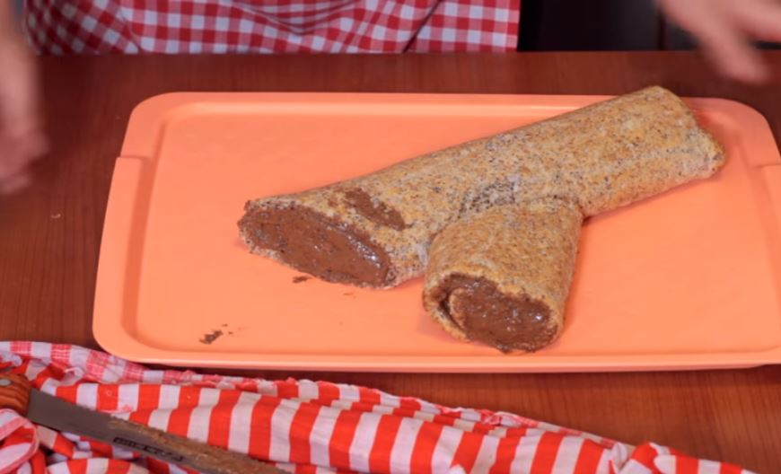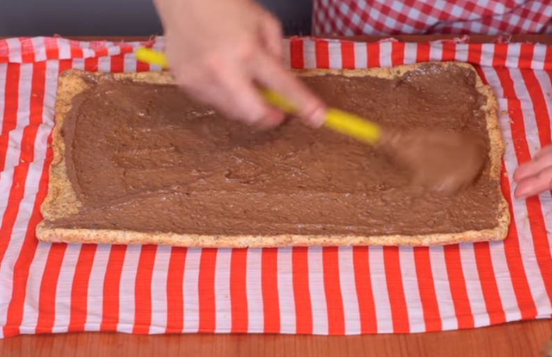 Ξετυλίξτε το μπισκότο και απλώστε τα 2/3 της κρέμας