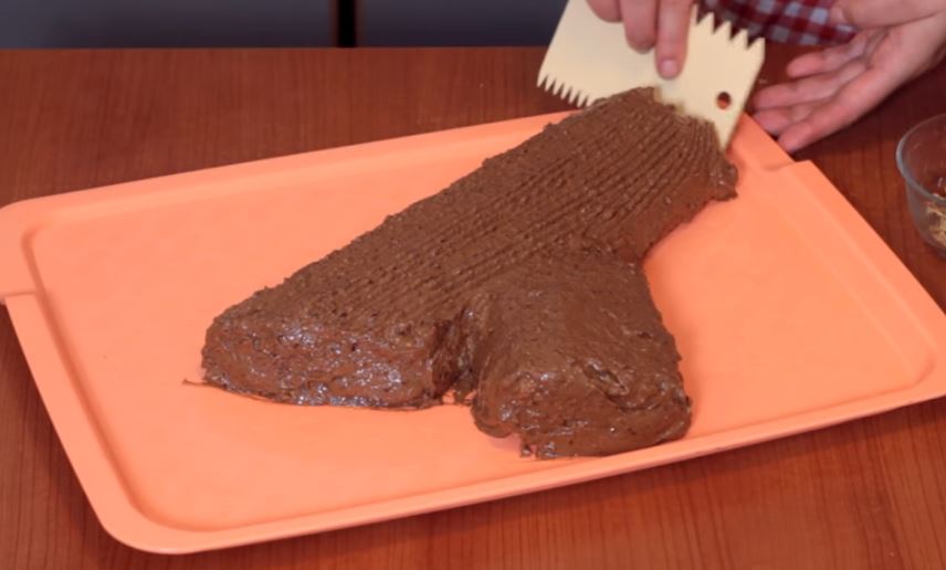 Καλύψτε με το υπόλοιπο γέμισμα και σχεδιάστε γραμμές κατά μήκος της κρέμας.