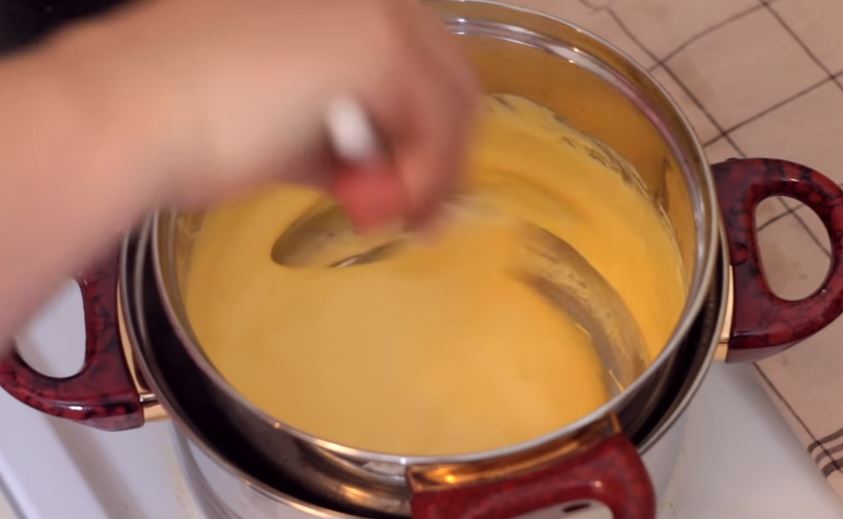 Ανακατέψτε την κρέμα για 10 λεπτά, μέχρι να πήξει και αν αφήνει ιχνος όταν τραβάτε την κουτάλα στο κάτω μέρος.
