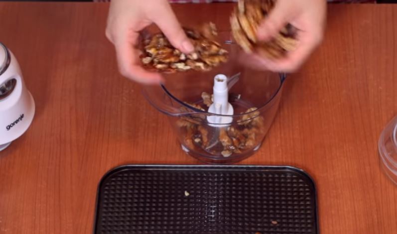 Προσθέτουμε τα καρύδια, αλεύρι και ανακατευουμε με ένα σύρμα χειρός