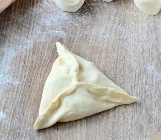 11. Κλειστε την ζύμη για να σχηματιστεί ένα τρίγωνο (όπως βλέπετε στην φωτό).
