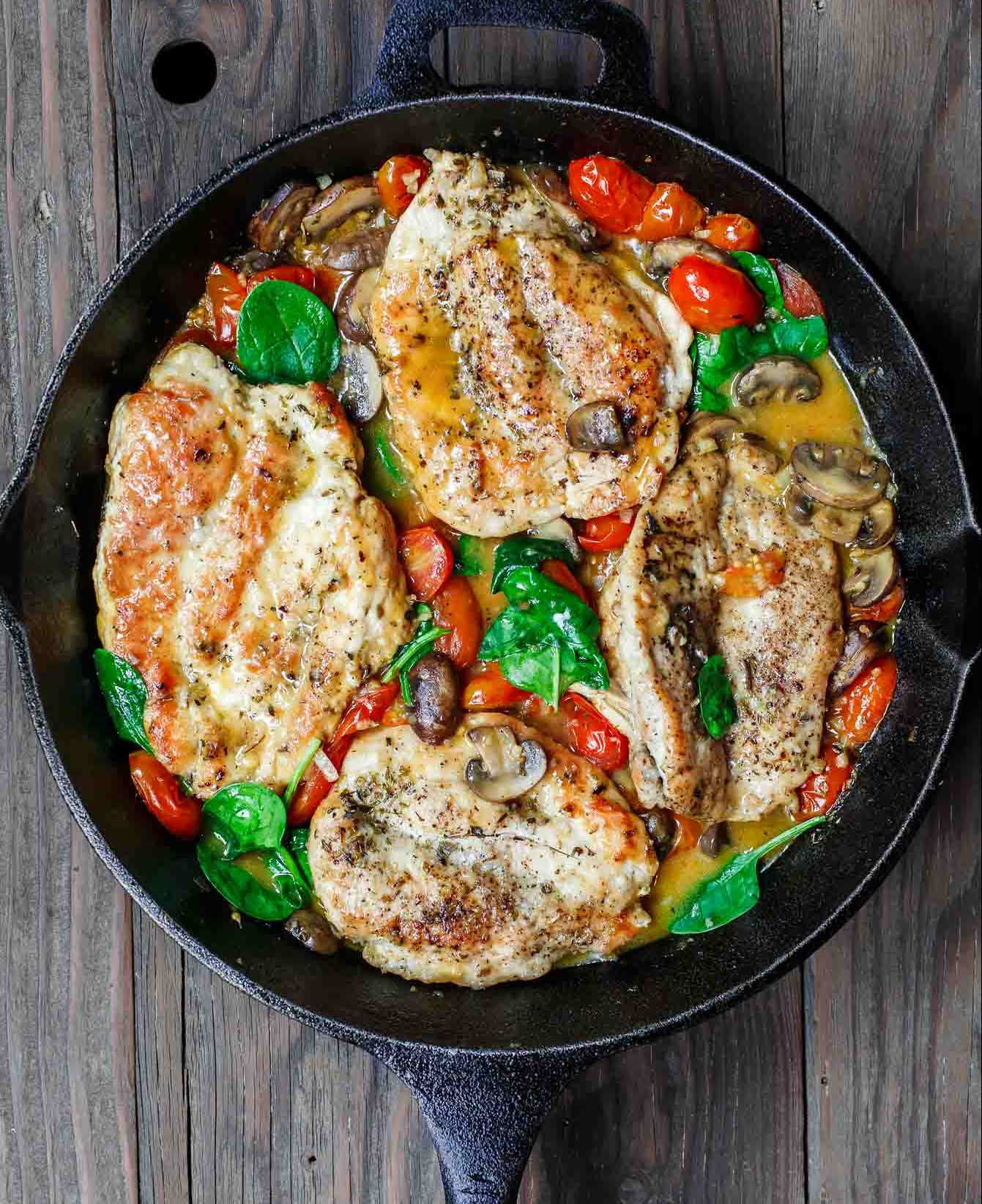 Αφήστε το να βράσει, στη συνέχεια προσθέστε το κοτόπουλο πίσω στο τηγάνι. Μαγειρέψτε πάνω από υψηλή φωτιά για 3-4 λεπτά, στη συνέχεια μειώστε τη φωτιά σε μέτρια – χαμηλή. Σκπάστε και μαγειρέψτε για άλλα 8 λεπτά ή έως ότου το κοτόπουλο μαγειρευτεί πλήρως.
