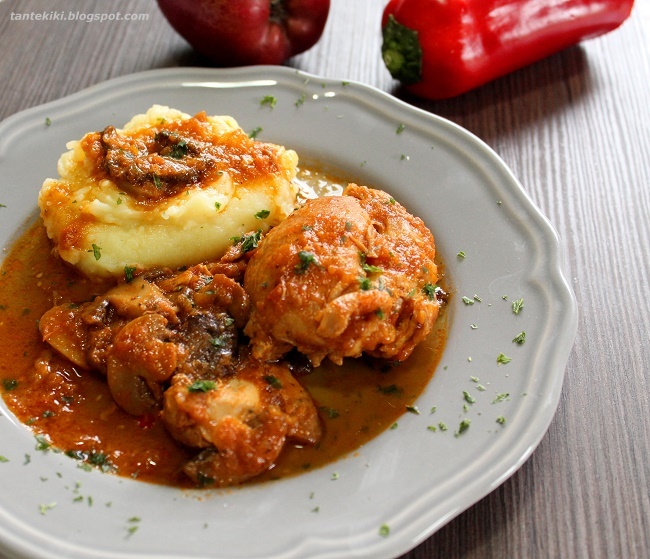 Κοτόπουλο κοκκινιστό με μανιτάρια
