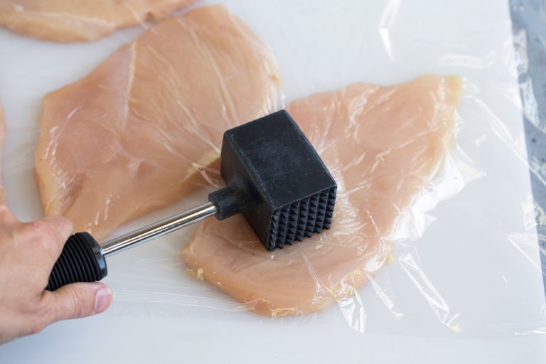 120-130gr στήθος κοτόπουλου *, χτυπημένο σε ένα ομοιόμορφο πάχος