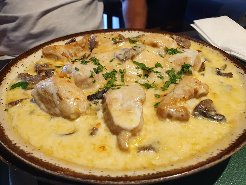 Κοτόπουλο με κρεμώδη σάλτσα μανιταριών, μουστάρδας και τυριού