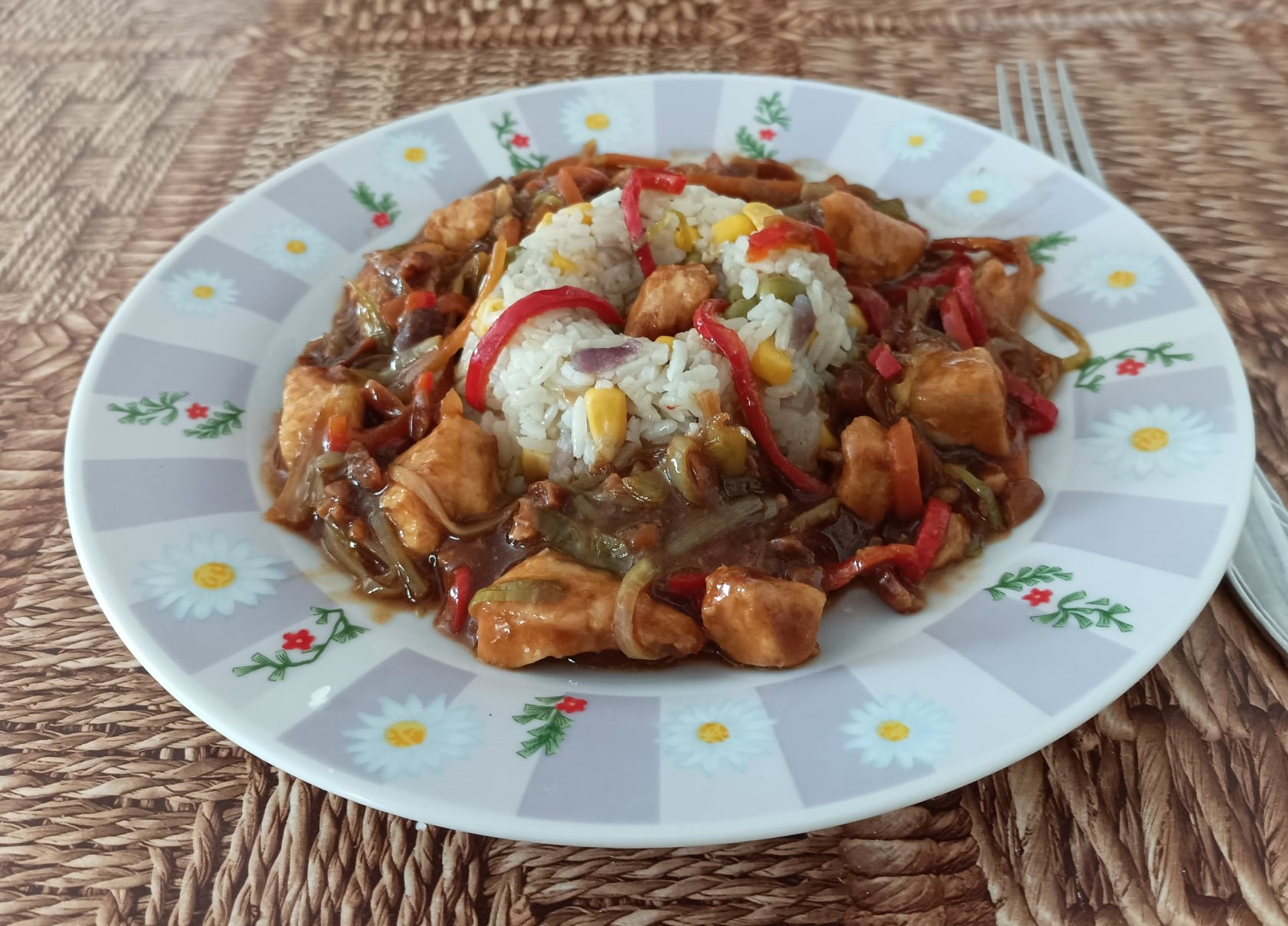 Κοτόπουλο με λαχανικά σε σάλτσα σόγιας