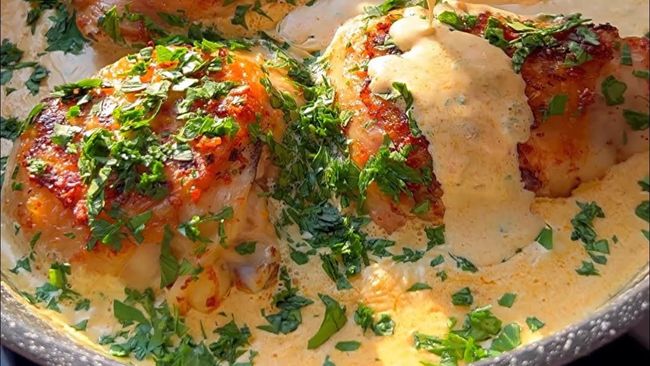 προσθέστε 1 κουταλιά της σούπας αλεύρι πριν την κρέμα για να πήξει η σάλτσα), επιστρέφουμε το κοτόπουλο.
