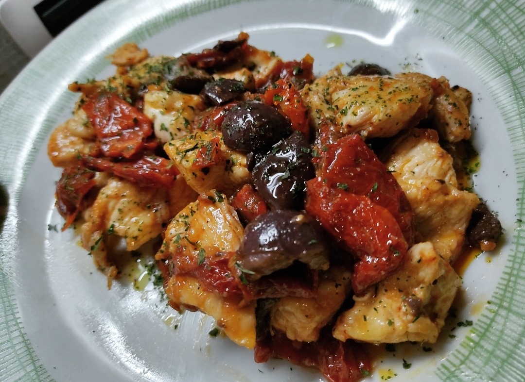 Γρήγορη και γευστική συνταγή για το μεσημεριανό ή το βραδινό σας; Δοκιμάστε αυτό το πιάτο με κοτόπουλο, λιαστές ντομάτες και ελιές! Είναι γεμάτο μεσογειακή γεύση και είναι έτοιμο σε λιγότερο από 30 λεπτά.
