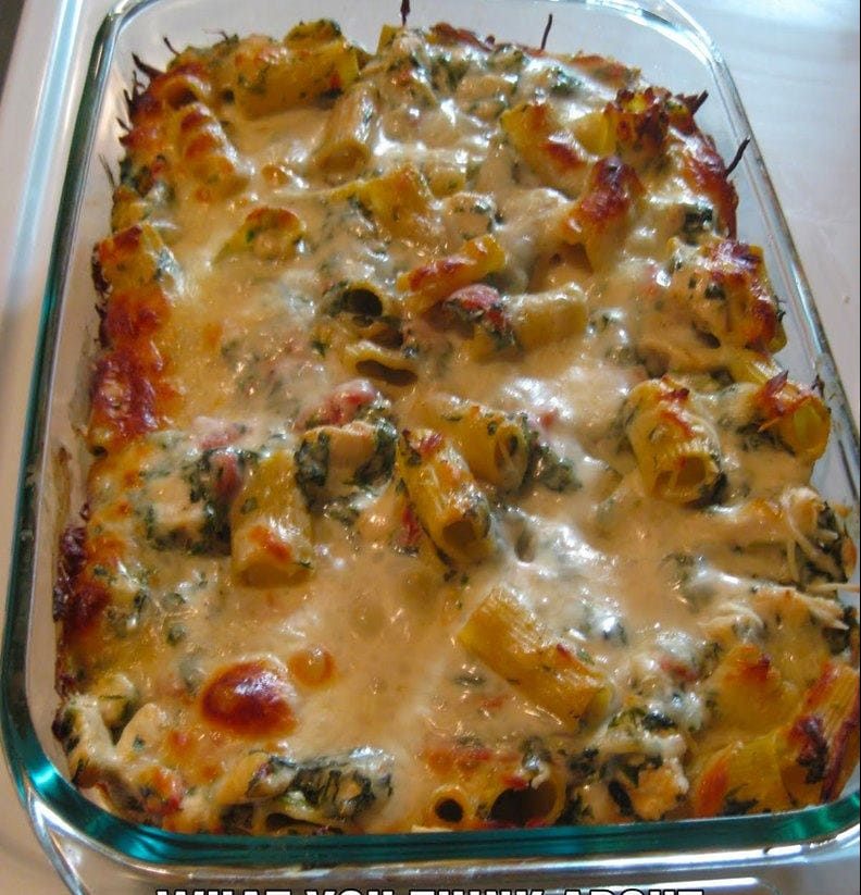 Κοτόπουλο με Πέννες Σπανάκι και τυρί παρμεζάνα