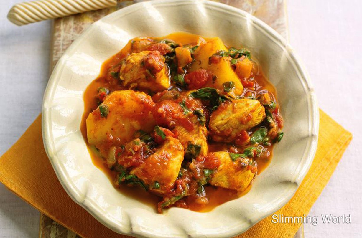 Όταν είναι ζεστό προσθέστε το κρεμμύδι, το κοτόπουλο, τις πατάτες, το σπανάκι και το κάρυ, ανακατέψτε για να αναμειχθούν καλά. Ανακατέψτε για 2-3 λεπτά.