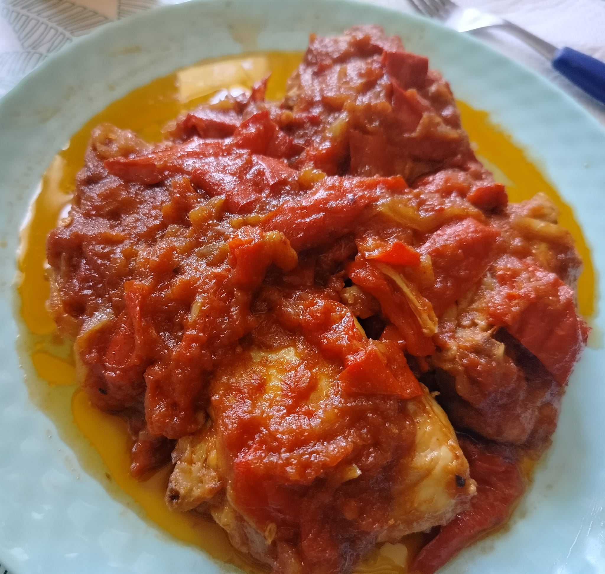 Σε μια πιατέλα βάζουμε το κοτόπουλο και την σάλτσα με τις πιπεριές και σερβίρουμε αμέσως.