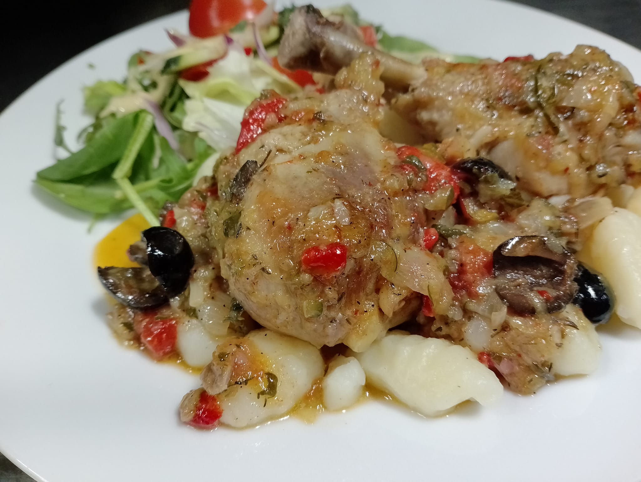 Κοτόπουλο με πιπεριες και ελιές