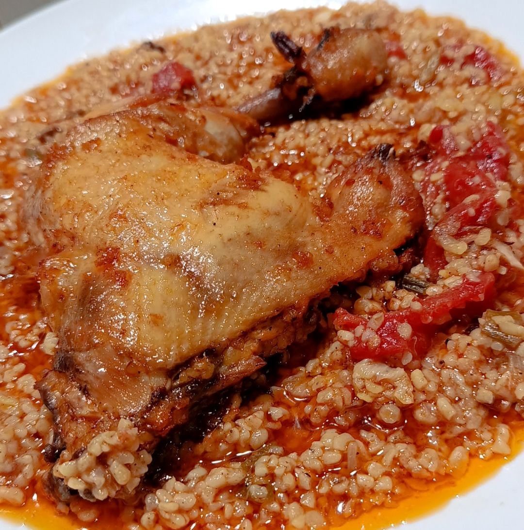 Φτιάξτε το παραδοσιακό Κοτόπουλο Εβρίτικο με Πλιγούρι! Σιγοβρασμένο κοτόπουλο, πλούσια γεύση ντομάτας, αρώματα κρεμμυδιού και σκόρδου και μοσχοβολιστό πλιγούρι.