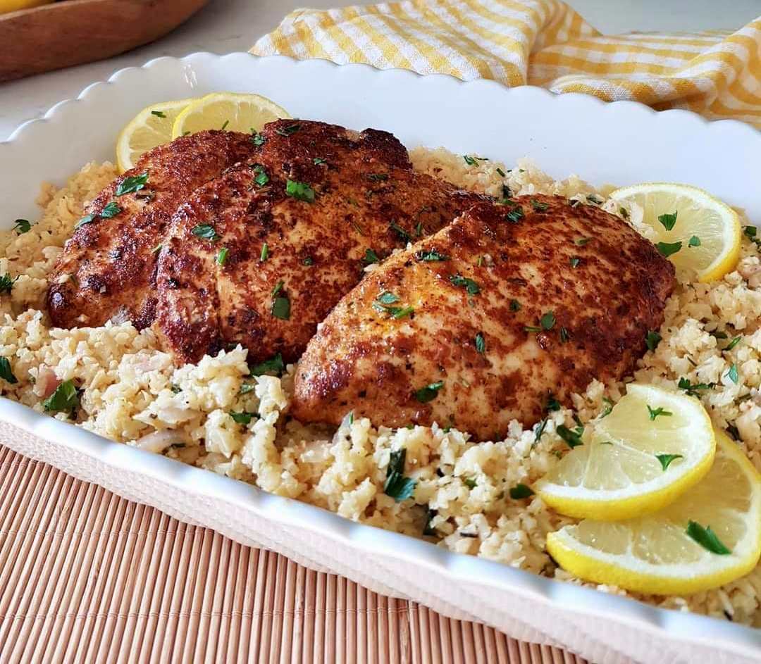 Το Κοτόπουλο με ρύζι κουνουπιδιούείναι τραγανό, ζουμερό-τρυφερό εσωτερικά και ΤΟΣΟ ΠΟΛΥ πεντανόστιμο! Ένα υγιεινό γεύμα με χαμηλούς υδατάνθρακες, χωρίς γλουτένη και φιλικό προς κετο ❤