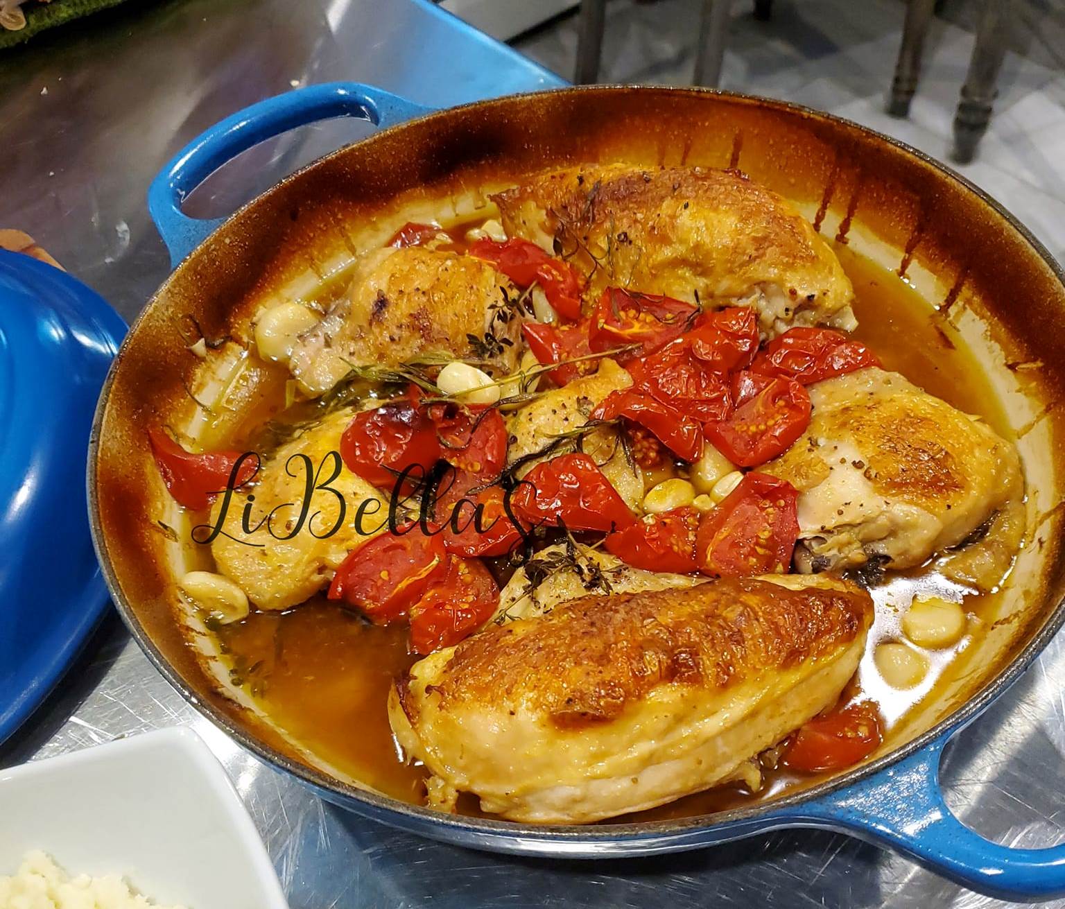 Ψήνουμε στο φούρνο, ακάλυπτα για 45-60 λεπτά ή μέχρι να ψηθεί το κοτόπουλο.