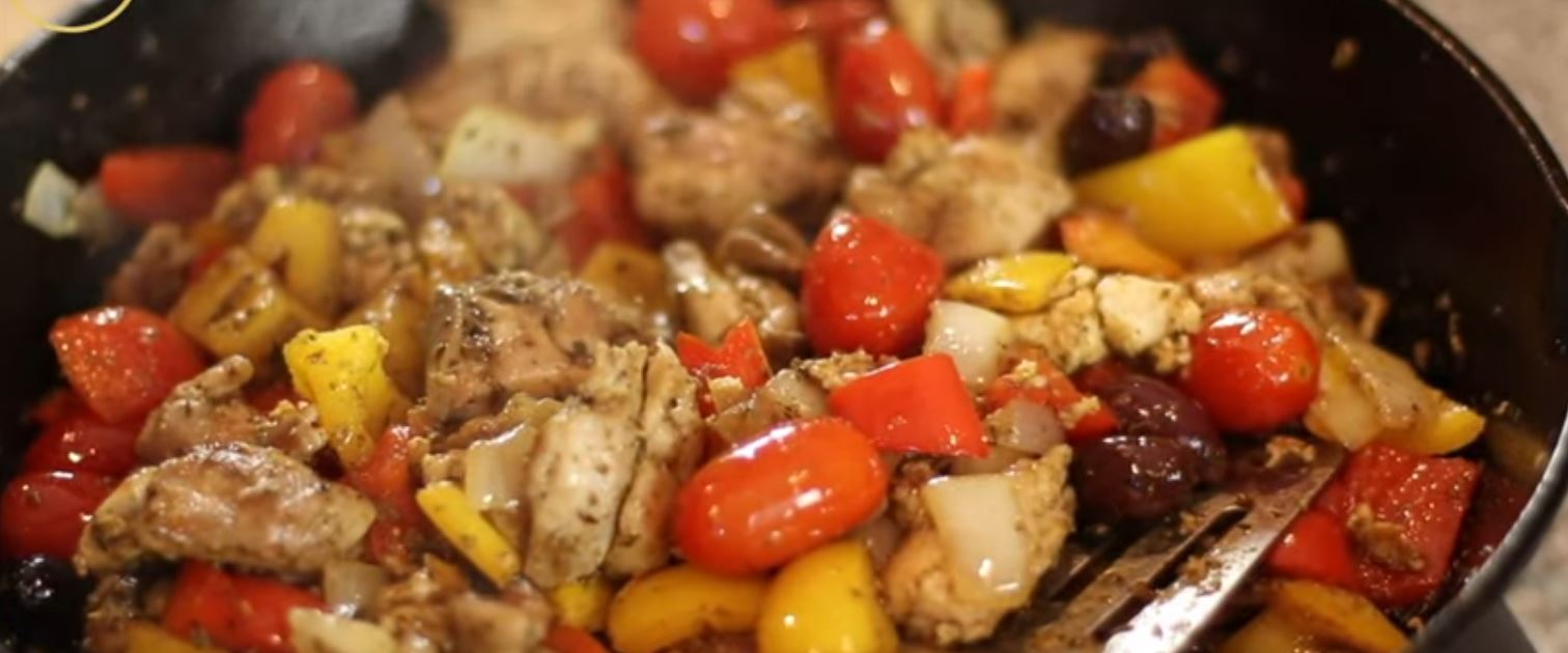 Τοποθετήστε το κοτόπουλο πίσω στο τηγάνι μαζί με το Χαλούμι, τις ντομάτες, το ξύσμα λεμονιού και τα μπαχαρικά. Ανακατέψτε για να ενσωματώσετε και να μαγειρέψετε για 4 λεπτά ή έως ότου οι ντομάτες είναι μαλακές.
