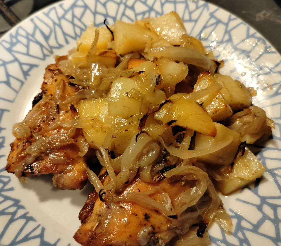 Κοτόπουλο στο φούρνο με πατάτες και κρεμμύδια