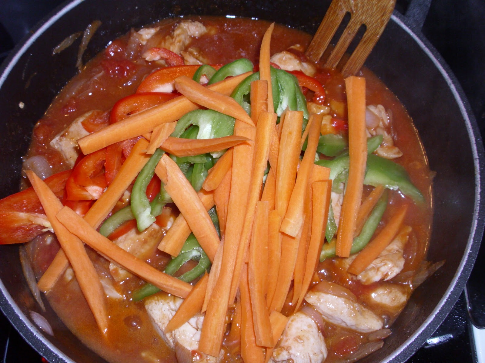 Κόβουμε σε ζουλιέν, τα καρότα και τις πιπεριές