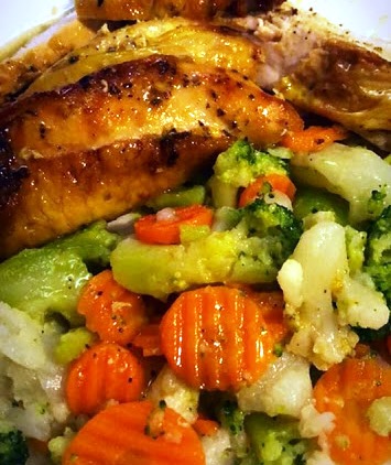 Σουρώνω και ..σερβίρω μαζί με το κοτόπουλο και πάνω στα λαχανικά δεν βάζω τίποτα παρά μόνο 2 κουταλιές της σούπας από το ζουμάκι που έχει βγάλει το κοτόπουλο !!!! Απίστευτα νόστιμο !!!