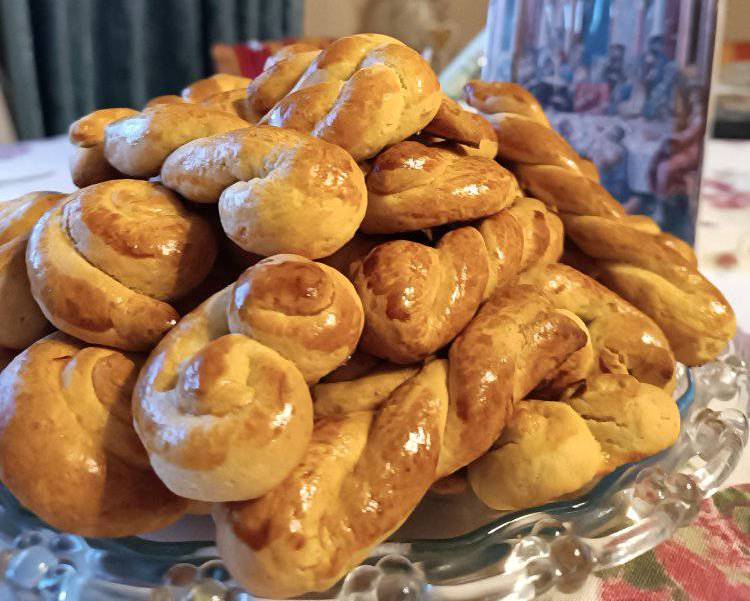 ιατέλα γεμάτη με χρυσαφένια, τραγανά Κουλουράκια Αμμωνίας, έτοιμα για σερβίρισμα