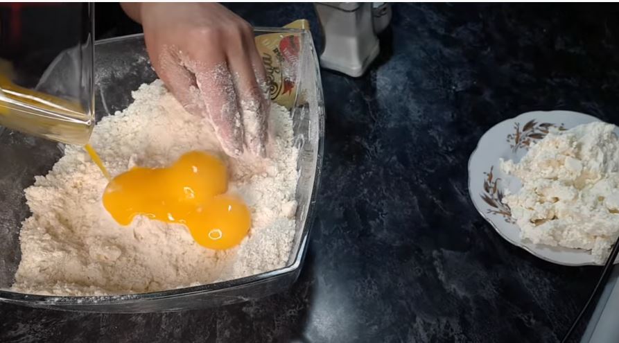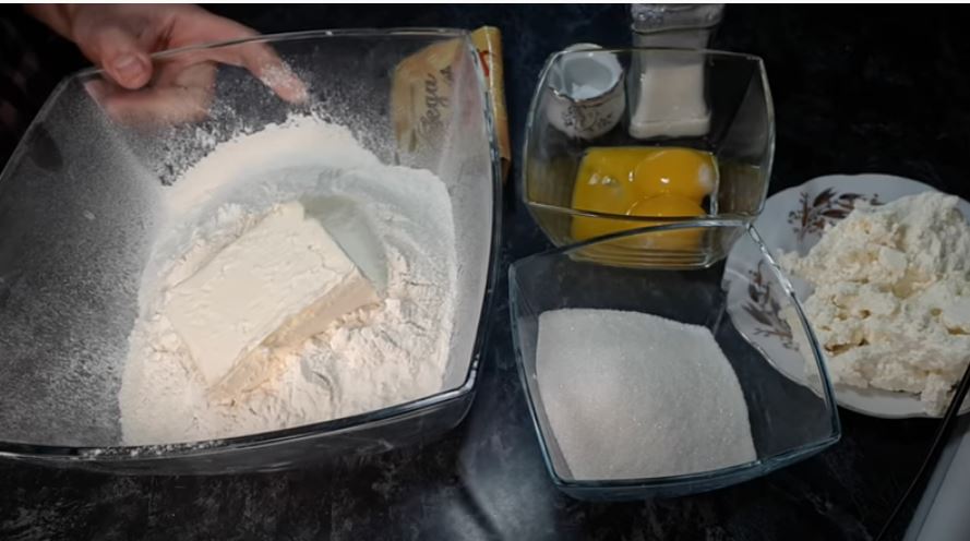 Παρασκευάζεται πολύ απλά, αποδεικνύεται εξαιρετικά νόστιμο, τρίβουμε το βούτυρο με αλεύρι σε μικρά ψίχουλα, προσθέτουμε ζάχαρη, μαγειρική σόδα, 3 κρόκους αυγών