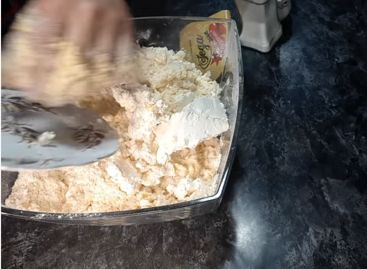 ζυμώνουμε και τελος ρίχνουμε και το τυρι