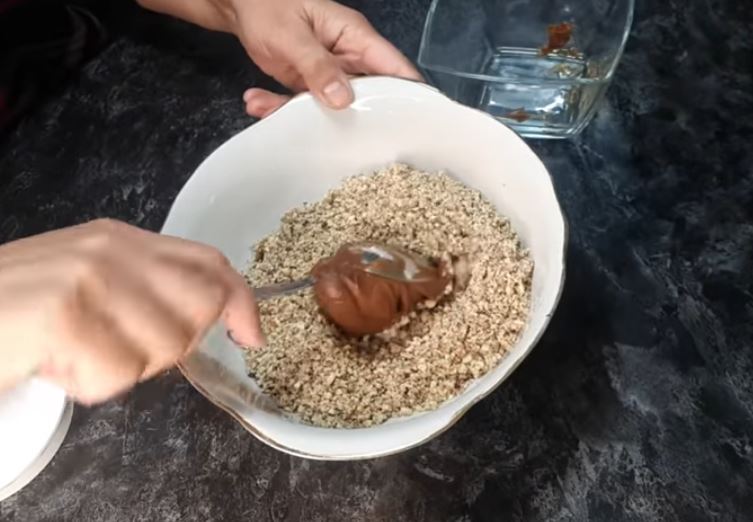 Αλέθουμε καρύδια σε μπλέντερ και ανακατέψτε με ζαχαρούχο γάλα και η γέμιση είναι έτοιμη.