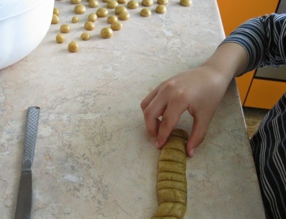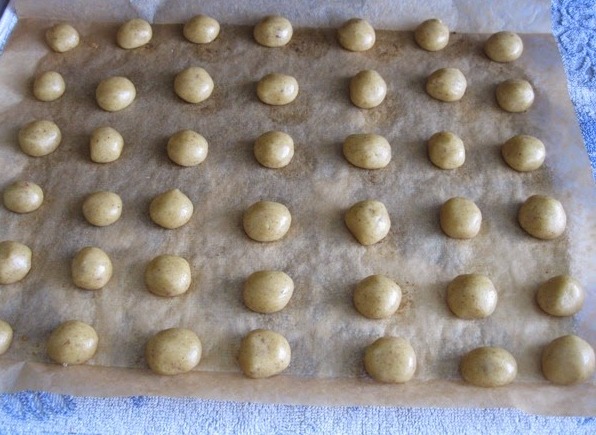 Φτιάξτε μπάλες, τις οποίες οποίες τοποθετούνται σε απόσταση σε ταψί στρωμένο με χαρτί ψησίματος.