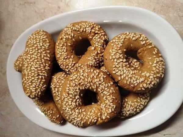 συνέχεια το ζυμώνουμαι με το αλεύρι. Τα βγάζουμε στη μηχανή για κουλουράκια γίνονται πολύ ποιο τραγανά η τα πλάθουμε στο χέρι, ψήνουμε στους 170 αέρα πάνω κάτω αντιστάσεις για 15 λεπτά μέχρι να πάρουν το χρώμα που θέλουμε