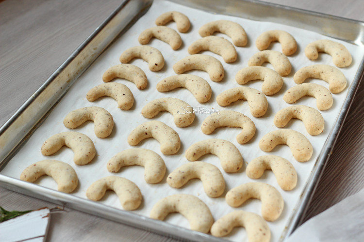 Τοποθετήστε την ημισέληνο σε ένα ταψί, καλυμμένο με χαρτί ψησίματος, αφήνοντας μία απόσταση μεταξύ τους (επειδή θα φουσκώσουν και μπορεί να κολλήσουν).
