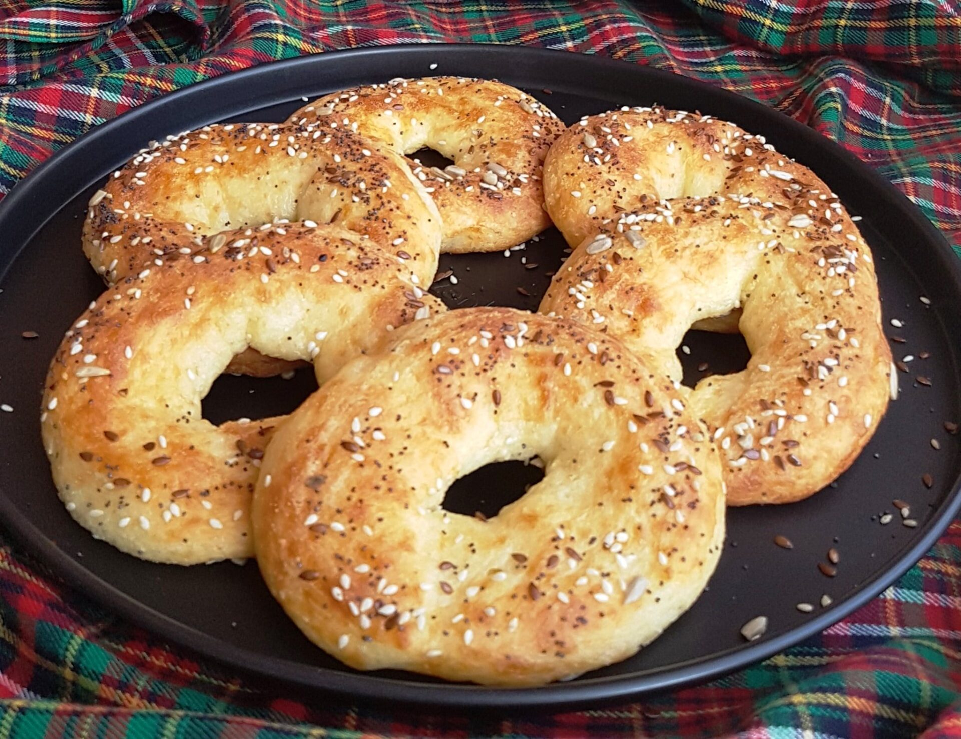 Ανοίξτε κάθε μέρος της ζύμης με τα χέρια σας και πλάστε τα κουλούρια. Τοποθετήστε σε ένα ταψί με χαρτί περγαμηνής. Πασπαλίζουμε με σπόρους από πάνω. Ψήνουμε στους 180 βαθμούς. Τα δικά μου ήταν έτοιμα σε περίπου 15-20 λεπτά. Ο φούρνος μου είναι αέριο, σκεφτείτε τον δικό σας.