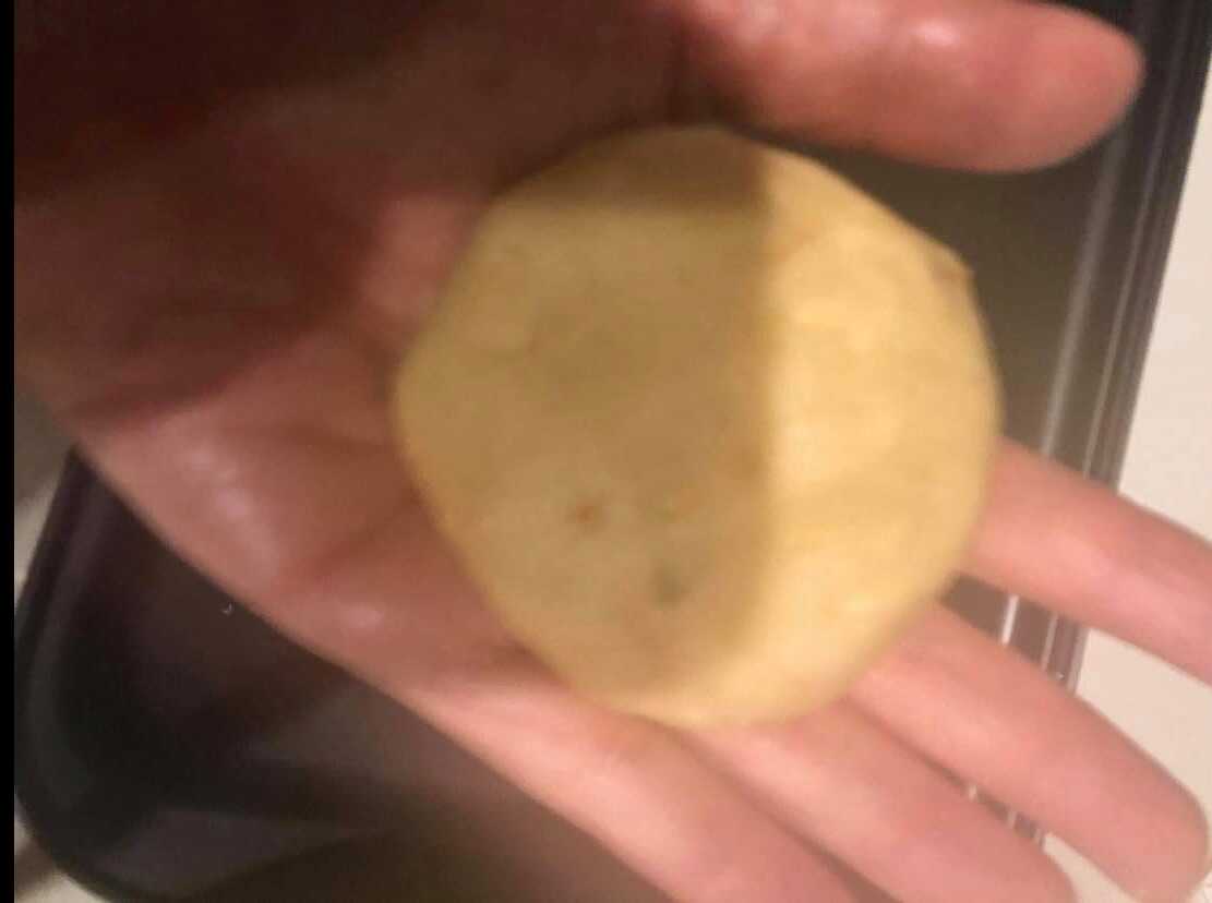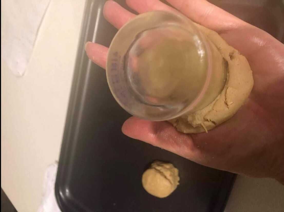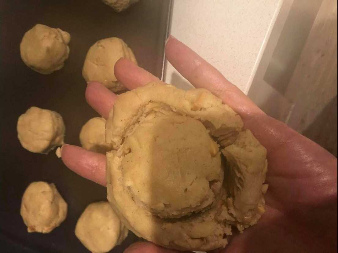 κόψετε έναν κύκλο στην παλάμη σας. Στη συνέχεια, αφήστε αυτό που μενει στην παλάμη σας και βάλτε το στρογγυλό πάνω σε ένα ταψί στρωμένο με χαρι ψησίματος. Επαναλάβετε τη διαδικασία μέχρι να τελειώσετε.