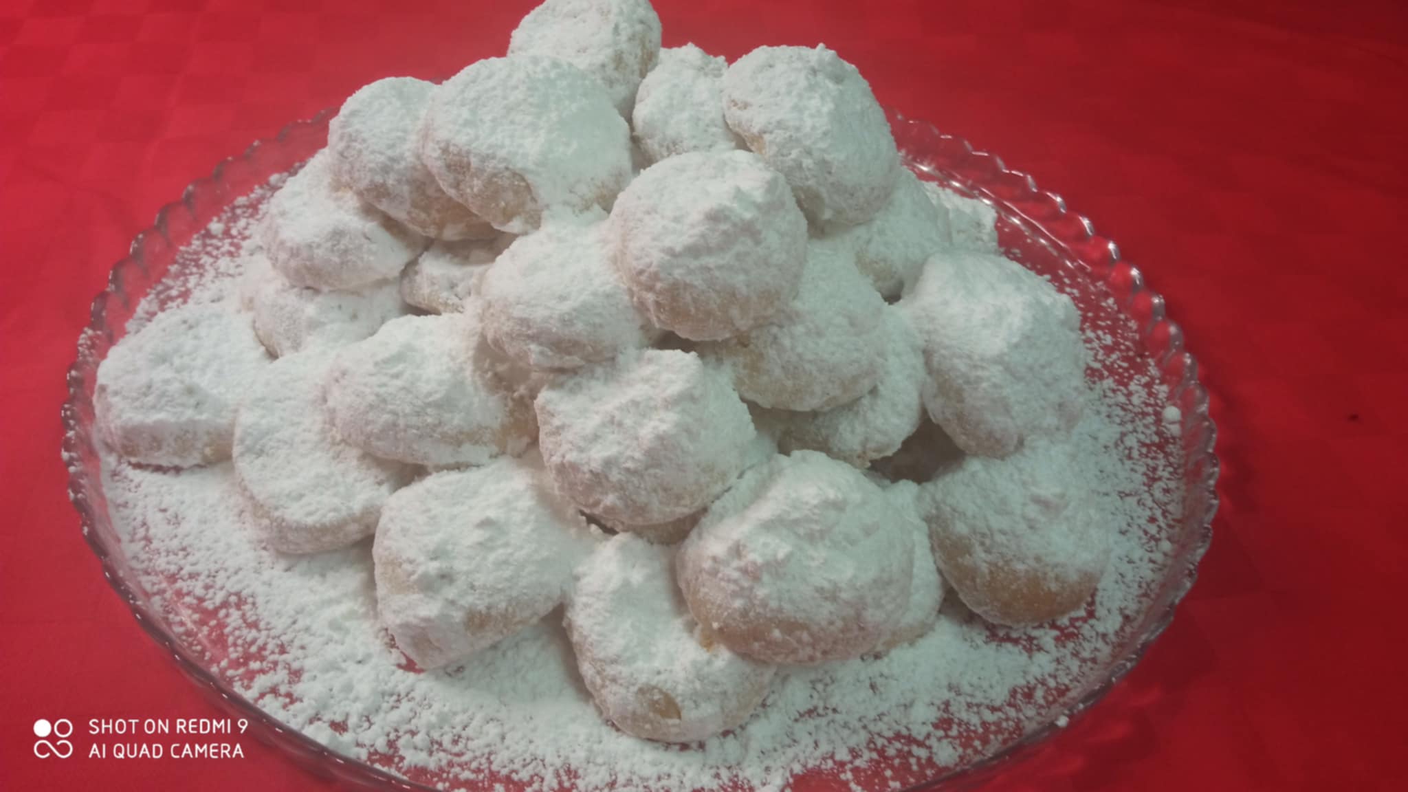 Μόλις κρυώσουν ελαφρώς, κυλήστε τους κουραμπιδες σε άχνη ζάχαρη αναμεμειγμένη με 2 βανίλιες.