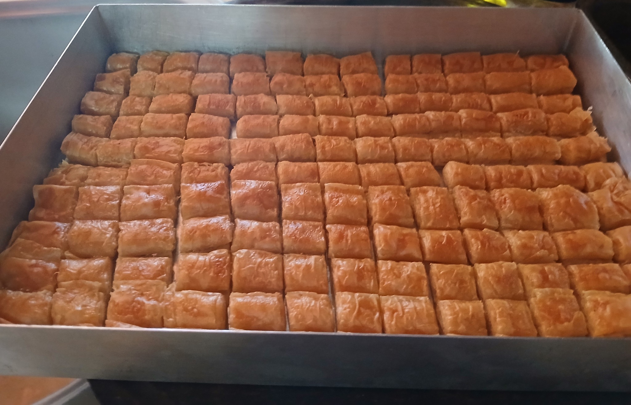 - Τυλίγουμε το διπλωμένο φύλλο σε ρολό κατά μήκος, όχι πολύ σφιχτά και το βαζουμε στο ταψί μας