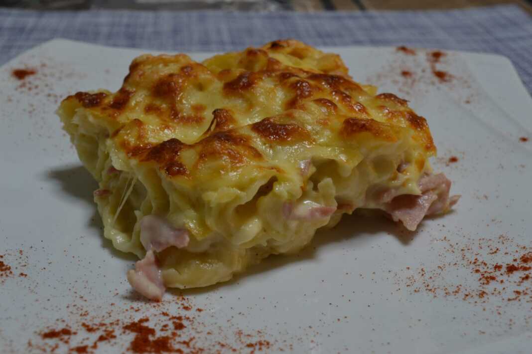 Μόλις βράσουν τα ζυμαρικά τα σουρώνουμε και τα ρίχνουμε στη μπεσαμέλ με τα τυριά ανακατεύοντάς τα καλά.