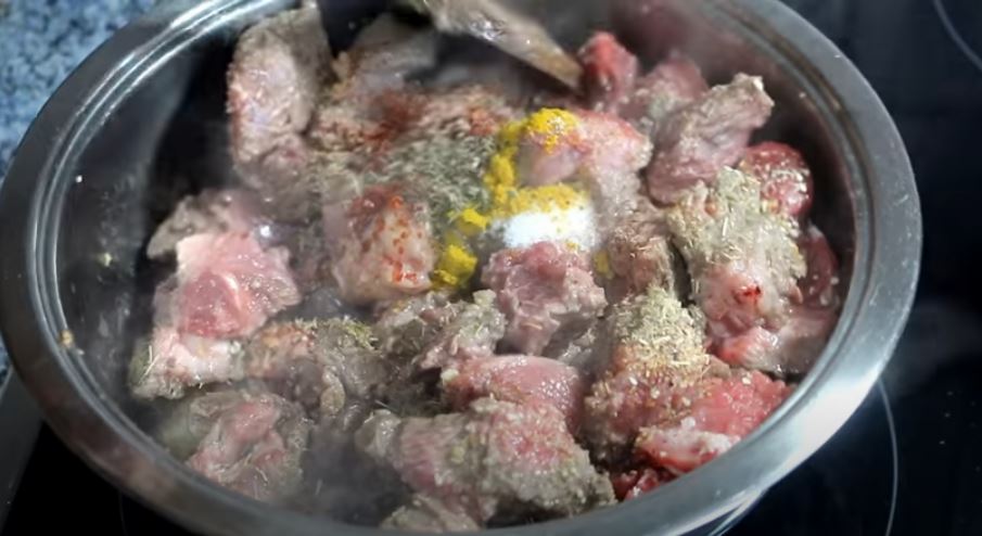 Σε μια άλλη κατσαρόλα αφού την αφήσουμε πρώτα να κάψει ρίχνουμε το κρέας και το τσιγαρίζουμε.