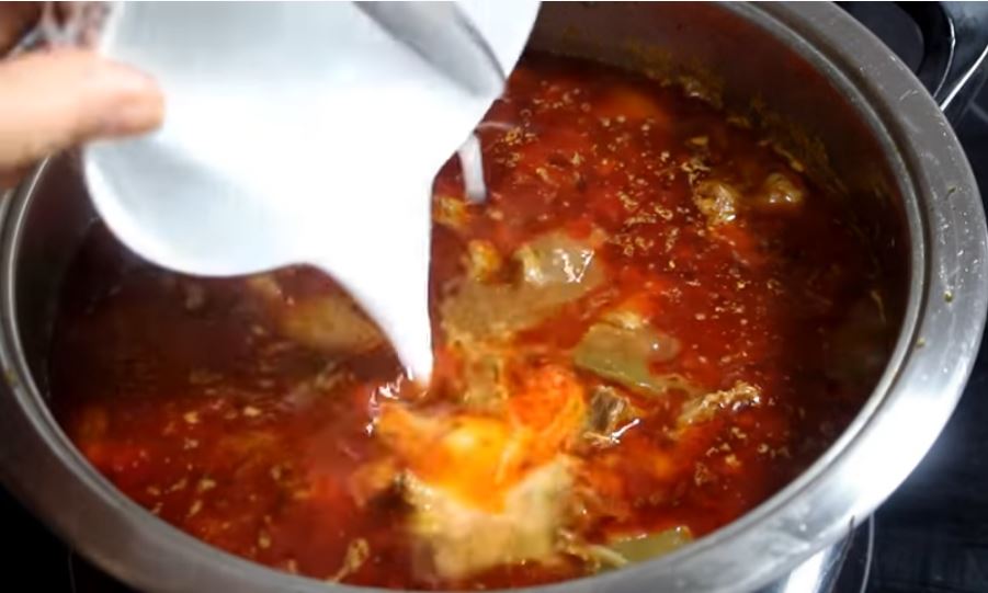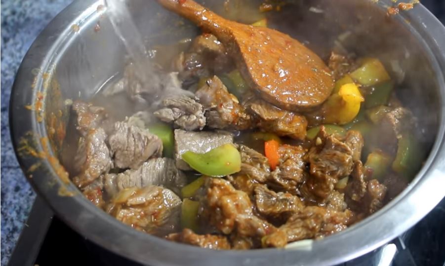 Προσθέτουμε νερό μέχρι να σκεπάσει το φαγητό μας και βράζουμε σε σιγανή φωτιά για 1 1/2 ώρα.